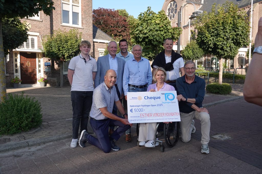 Aan het einde van het bezoek ontving Esther Vergeer een cheque met het prachtige bedrag van 5.000 euro. Dit hebben de deelnemers en sponsoren van de Teylinger Open golftoernooi, dat jaarlijks door de Rotary Club Voorhout georganiseerd wordt, bij elkaar gespeeld. Esther was heel blij met dit bedrag: “Met dit bedrag helpen jullie om kinderen hun leven lang gezond te houden!”